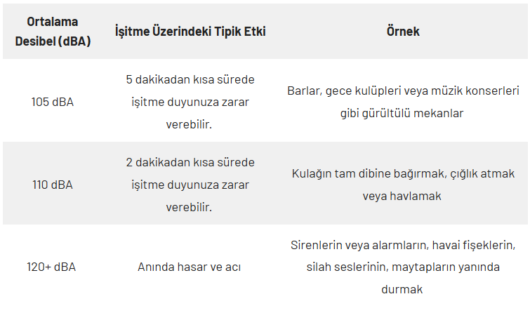 100 desibelden yüksek gürültü, anında işitme kaybına neden olabilir.